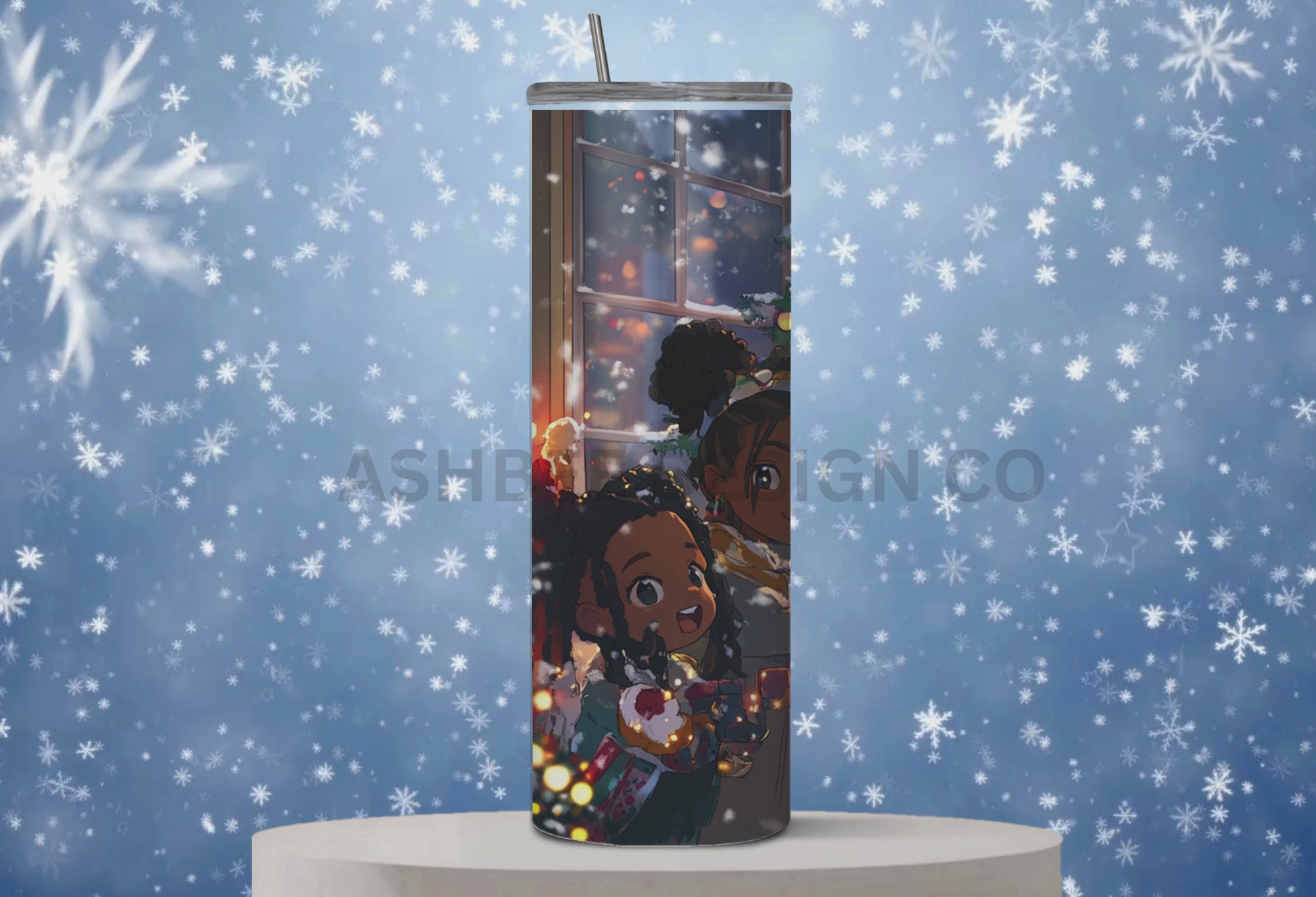 Enjoy hot or cold drinks on the go with this holiday black anime inspired stainless steel tumbler! This reusable tumbler with a metal straw is a perfect combo for hot or cold drinks at any time of the day.