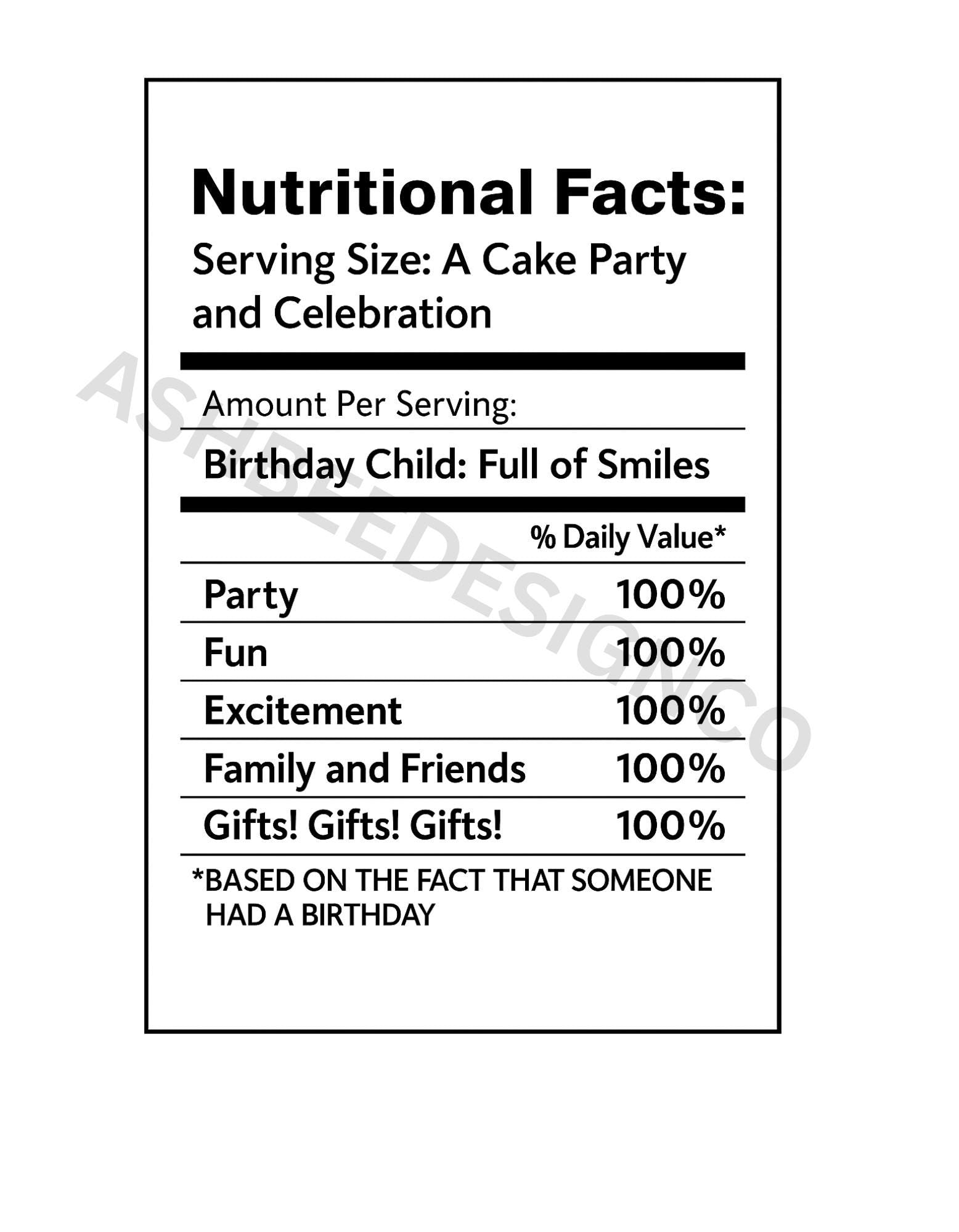 Party Favor Nutritional Label