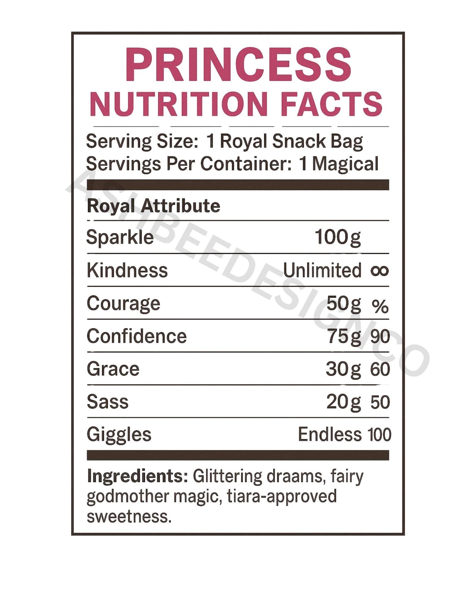 PRINCESS Nutrition Label |Chip Bag | Party Favor Template